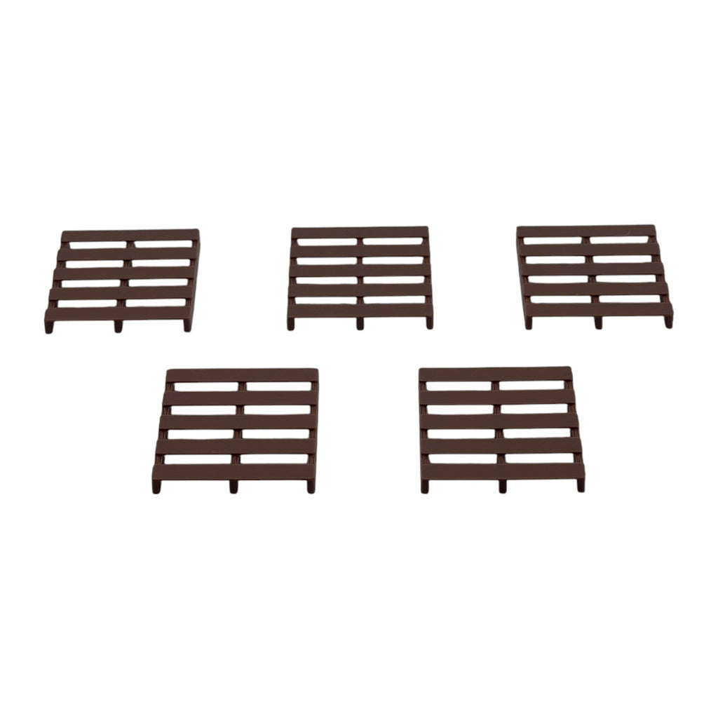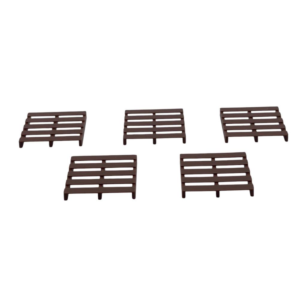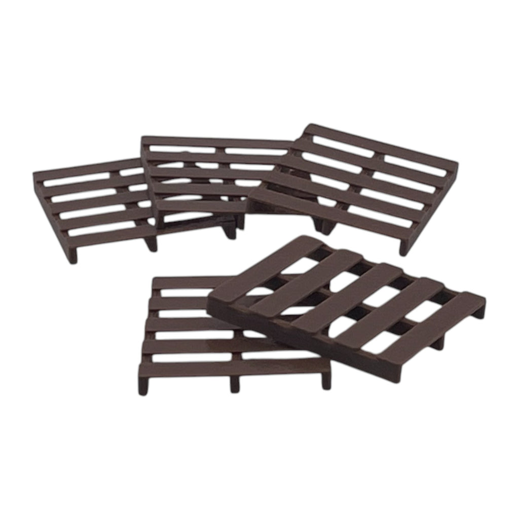 Add realistic finishing touches to your layout with this 5-pack of brown pallets. Perfect for trackside scenes, loading docks, warehouses, factories, and industrial yards, these pallets instantly bring life and activity to your railroad or diorama.