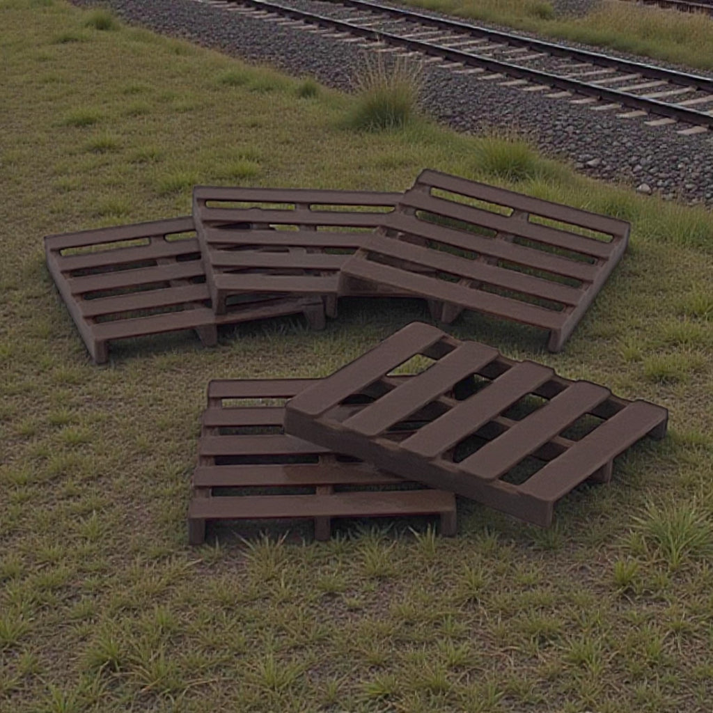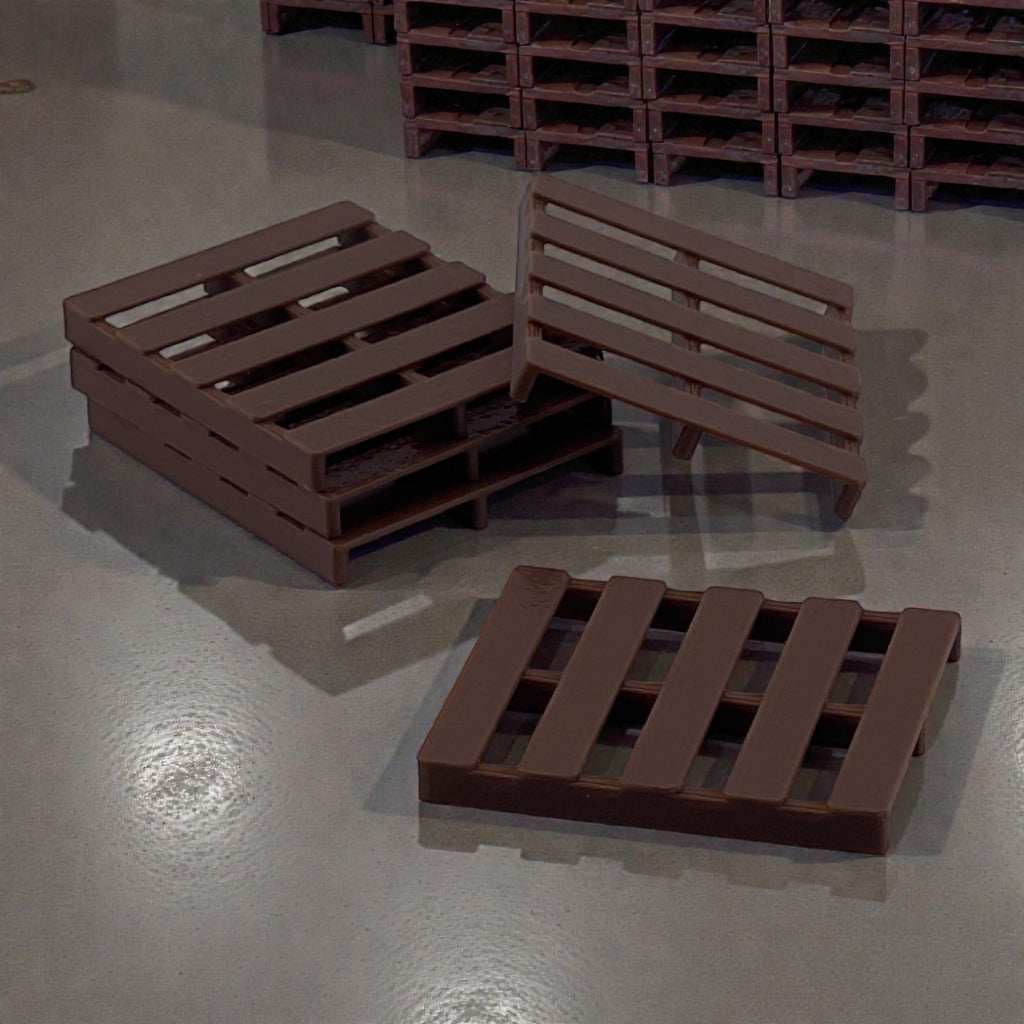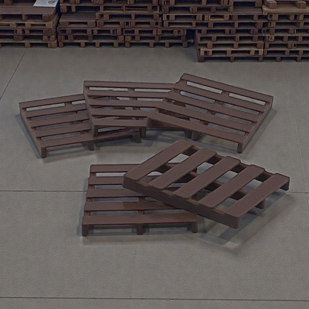 Add realistic finishing touches to your layout with this 5-pack of brown pallets. Perfect for trackside scenes, loading docks, warehouses, factories, and industrial yards, these pallets instantly bring life and activity to your railroad or diorama.