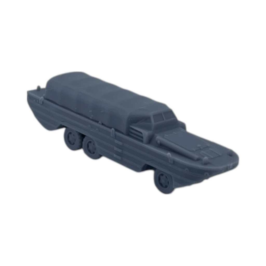 The scale DUKU "The Duck" model captures the iconic amphibious vehicle used by the U.S. military during World War II and the Korean War. Known for its all-terrain and water-crossing capabilities, this detailed gray model reflects the original DUKW’s utility in transporting troops and supplies across challenging environments. Perfect for railcar loads, military dioramas or historical model collections, these replicas offer precise scale accuracy and authentic design features.