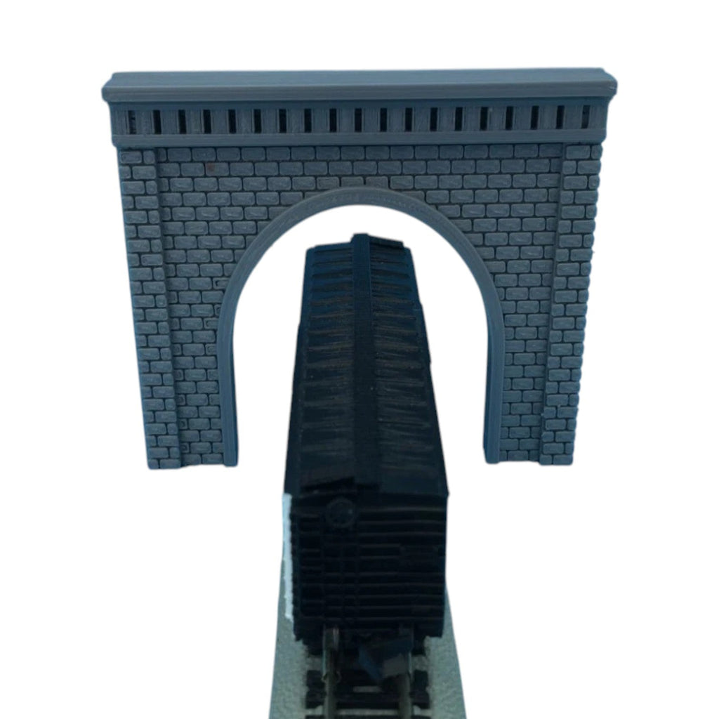 Enhance the realism of your scale model railroad with this Stone Tunnel Portal, expertly crafted to replicate the look of traditional masonry tunnel entrances. Featuring a detailed gray stone texture, this portal creates a convincing and visually striking transition between open track and tunnel.