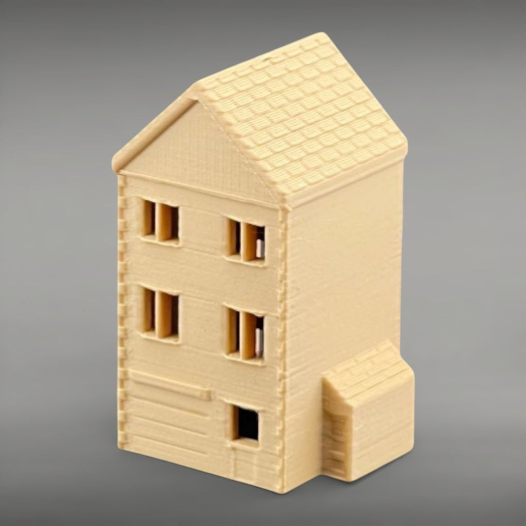 Suburban Row House #5 - Three Story with Shed - HO Scale 1:87 - Brown