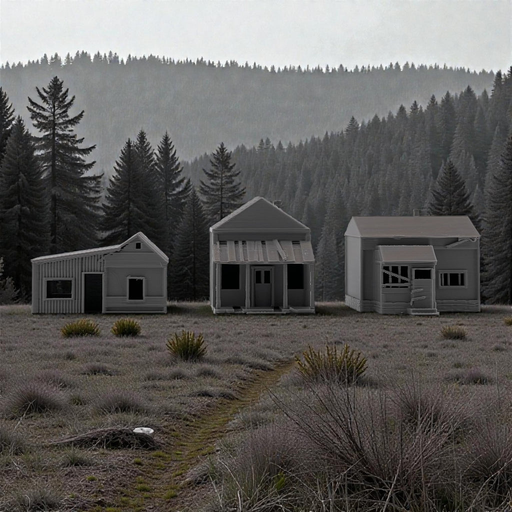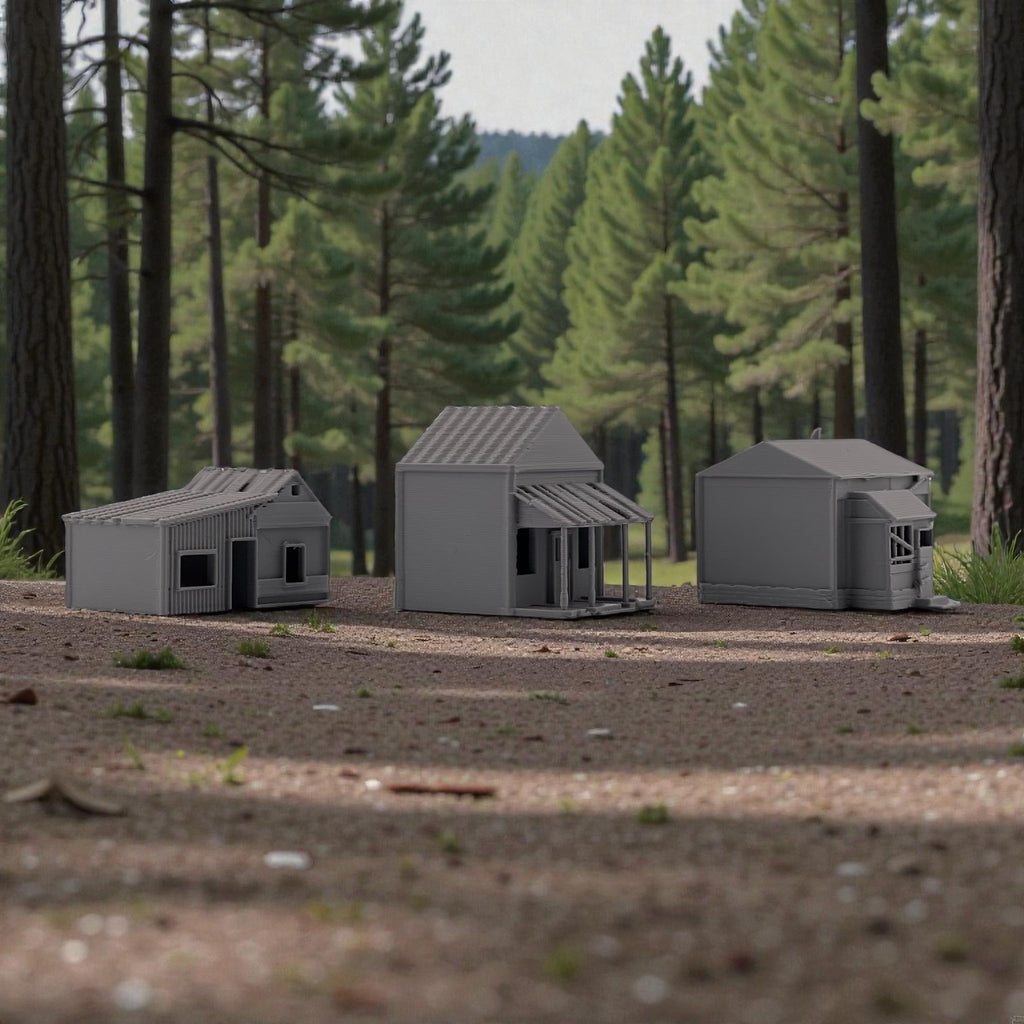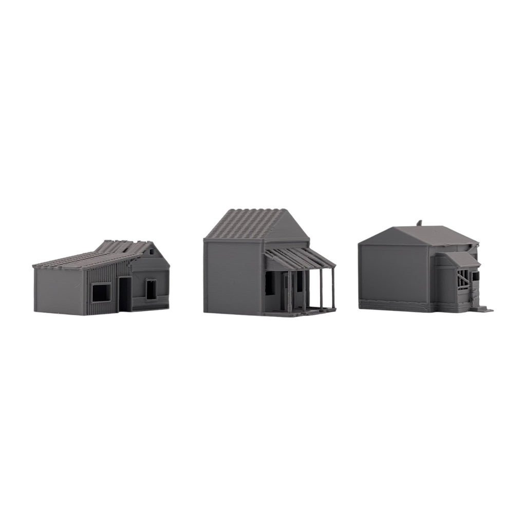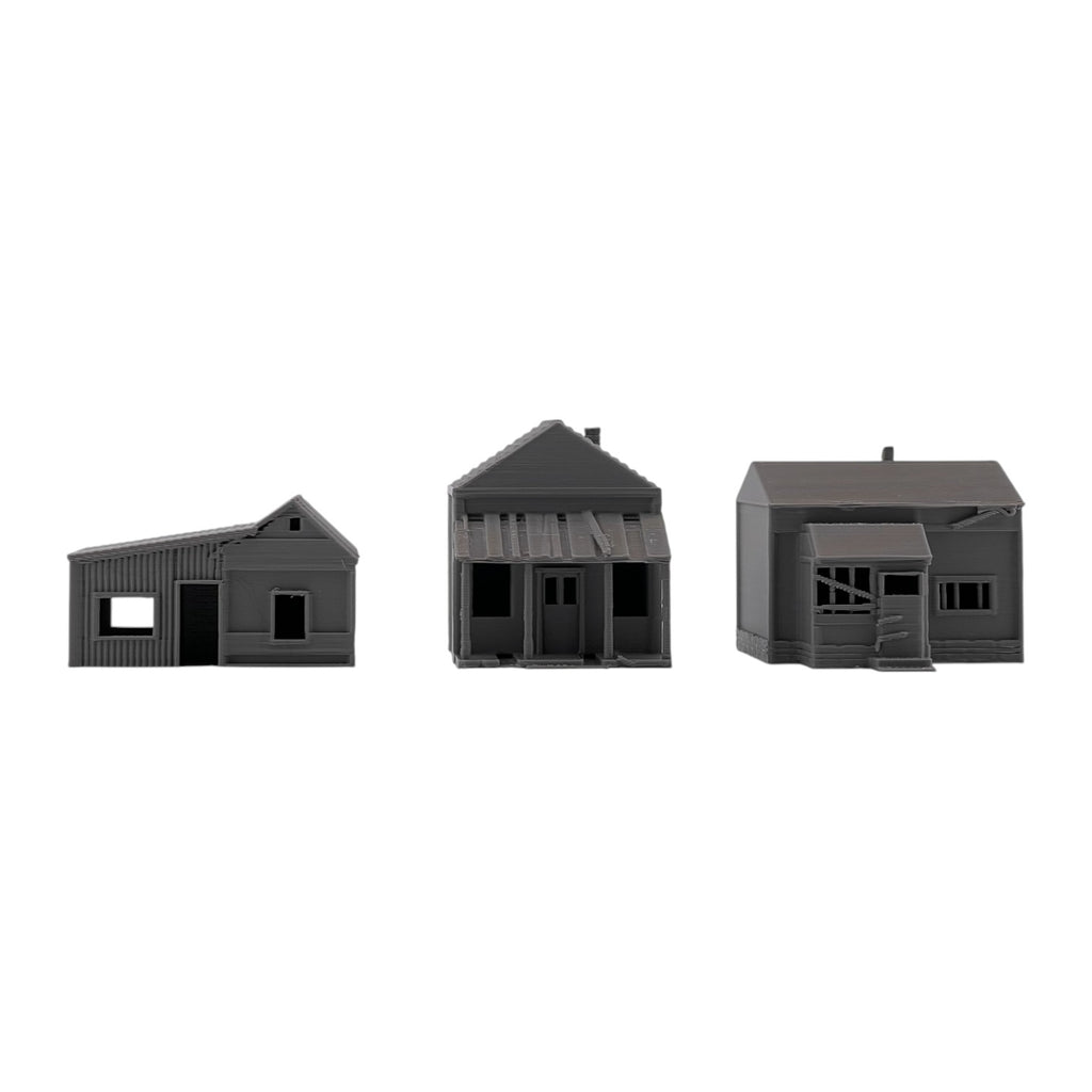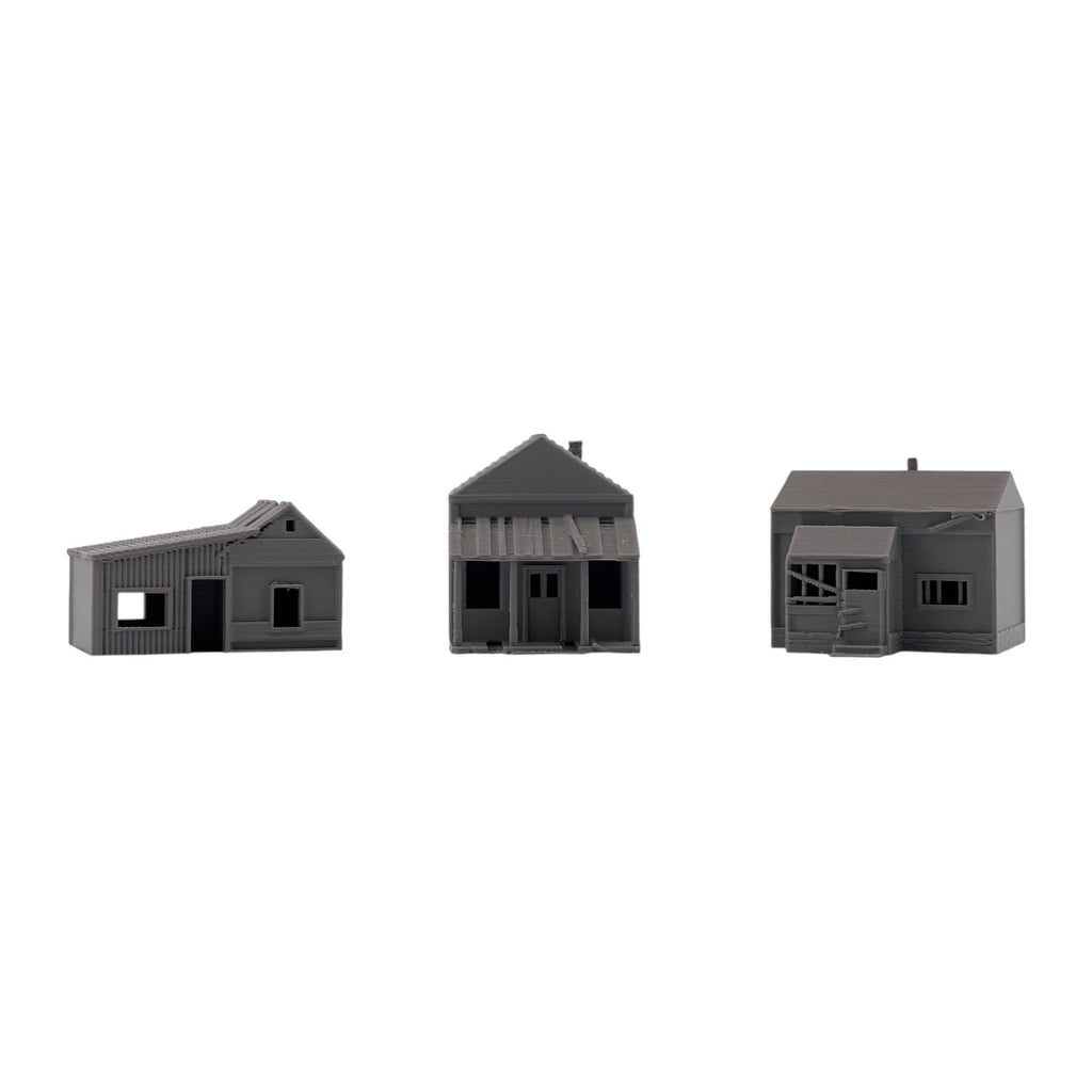 Add atmosphere and storytelling to your layout with this set of three Small Abandoned Houses. Designed to capture the look of run-down, long-forgotten structures, these buildings are perfect for depicting neglected neighborhoods, rural backroads, or areas left behind by time. They can also be used as weathered trackside shanties—ideal for representing forgotten worker housing, maintenance sheds, or long-abandoned structures along quiet rail lines.