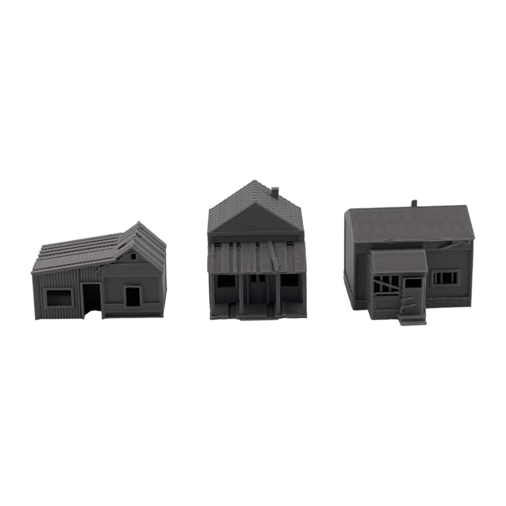 (3) Small ABANDONED HOUSES Run Down Building Set - O Scale 1:48 - No Assembly Required!