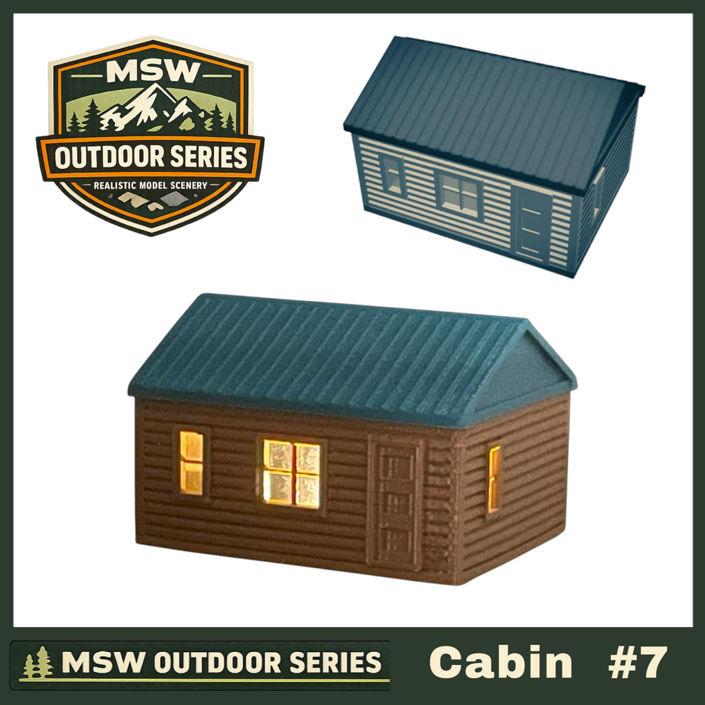 Bring rustic charm to your layout or diorama with Cabin #7 from "The Outdoor Series". Designed with realism and ease of use in mind, this cabin is modeled in color and features thoughtful details that make it perfect for both display and lighting upgrades.