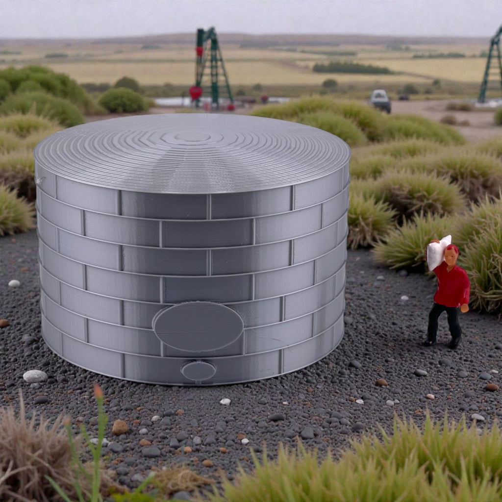 This highly detailed scale oil or fuel storage tank is modeled from real tanks currently in use at the Union Pacific Railyard in Denver, Colorado, ensuring authentic industrial realism for your layout.