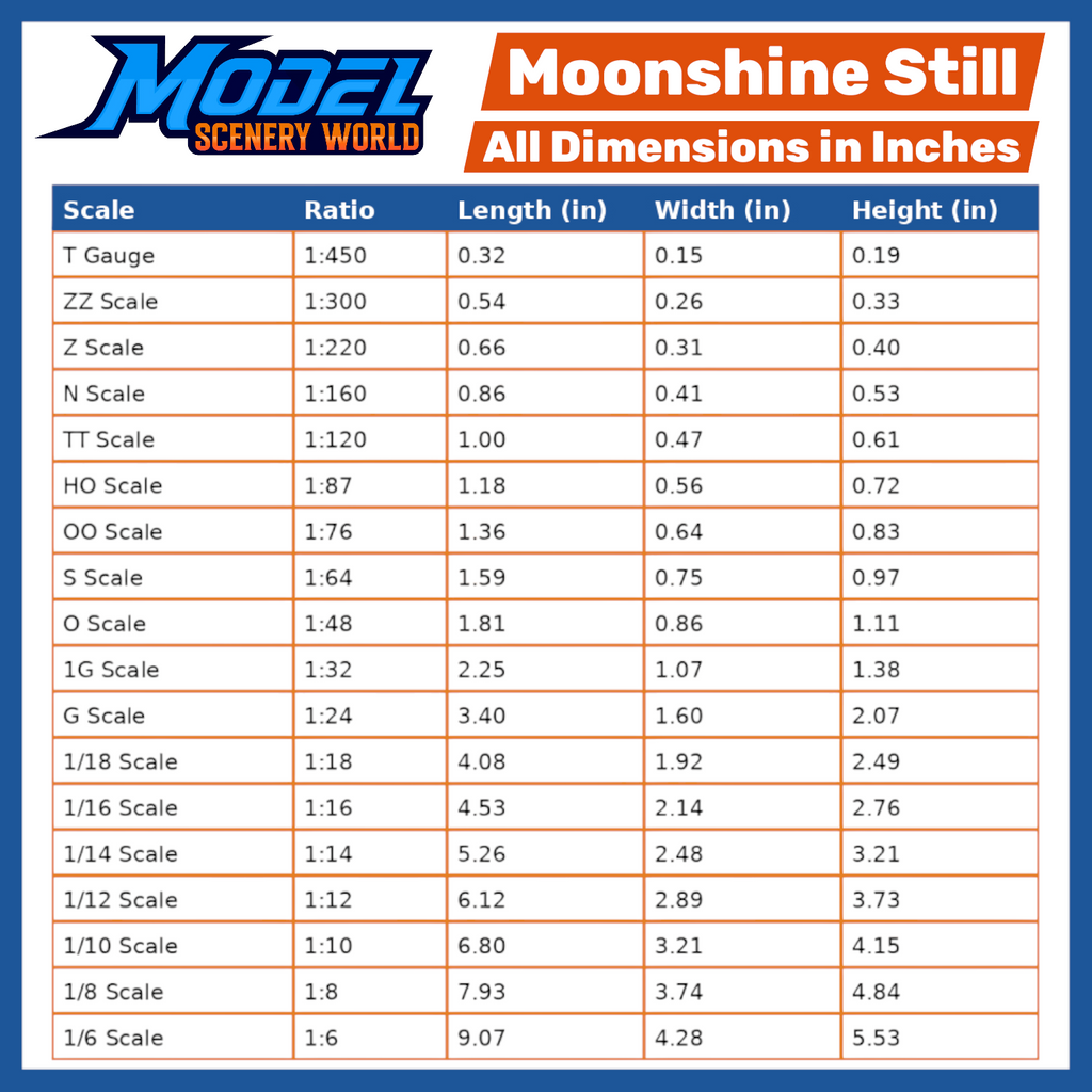 Moonshine stills come in many shapes and sizes. Please refer to the size table shown in Image 2 to select the version that best fits your project.