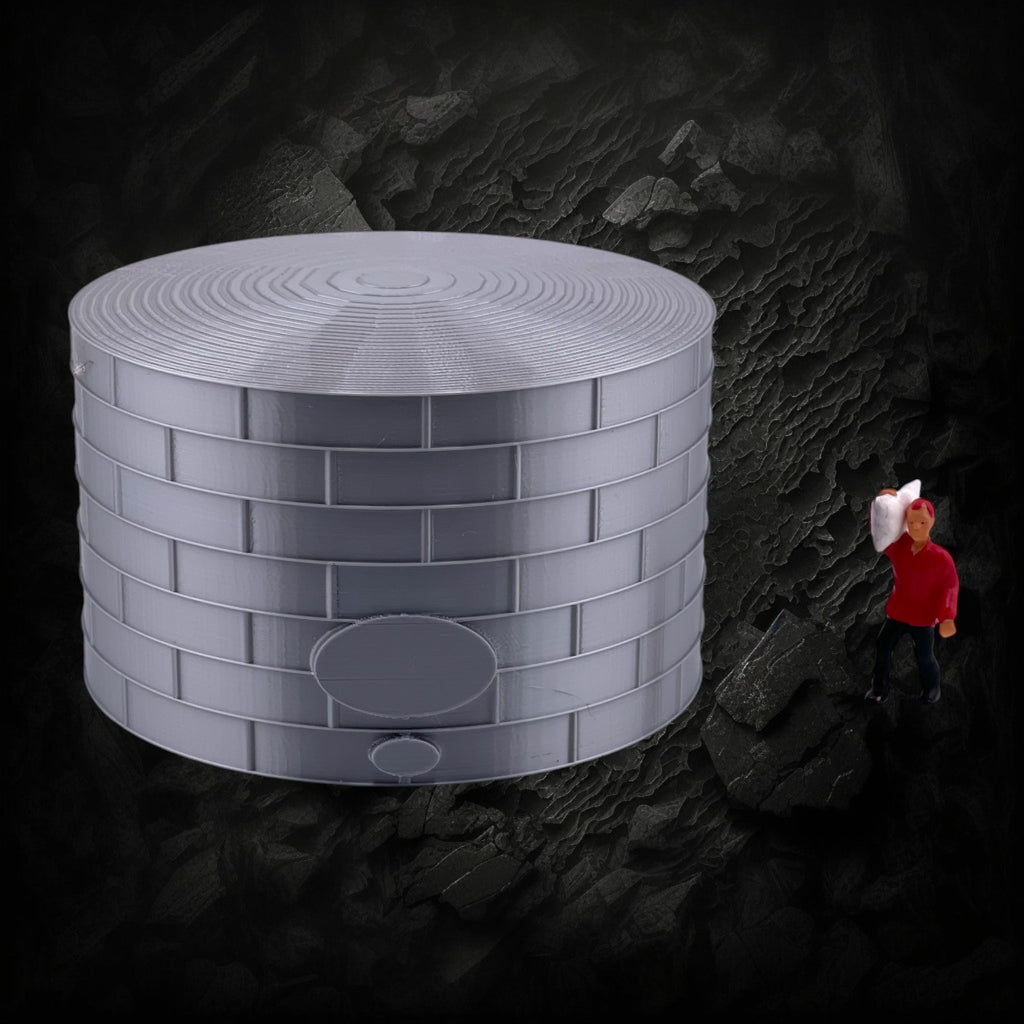 This highly detailed scale oil or fuel storage tank is modeled from real tanks currently in use at the Union Pacific Railyard in Denver, Colorado, ensuring authentic industrial realism for your layout.
