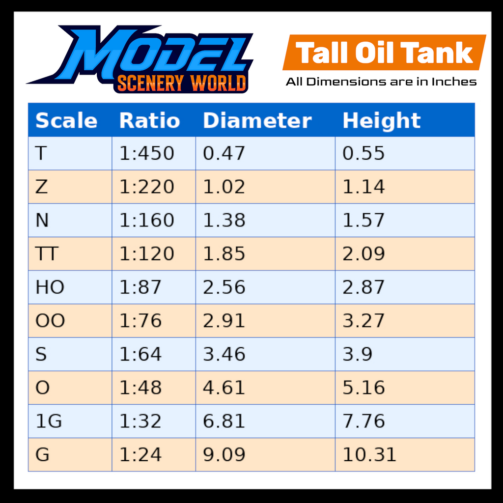 This highly detailed scale tall oil or fuel storage tank is modeled from real tanks currently in use at the Union Pacific Railyard in Denver, Colorado, ensuring authentic industrial realism for your layout.