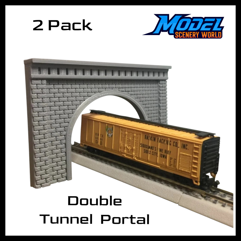 Enhance the realism of your scale model railroad with this Stone Tunnel Portal set, expertly crafted to replicate the look of traditional masonry tunnel entrances. Featuring a detailed gray stone texture, this portal creates a convincing and visually striking transition between open track and tunnel.