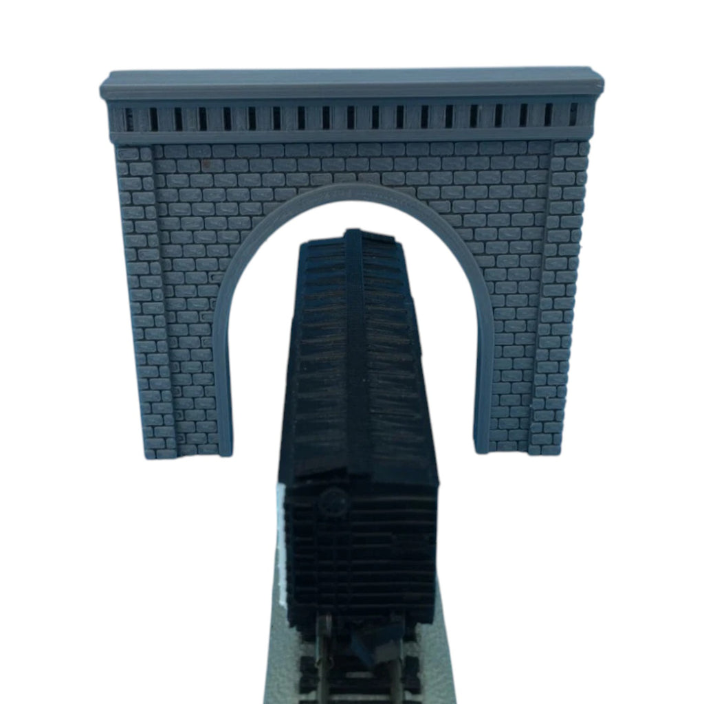 Enhance the realism of your scale model railroad with this Stone Tunnel Portal set, expertly crafted to replicate the look of traditional masonry tunnel entrances. Featuring a detailed gray stone texture, this portal creates a convincing and visually striking transition between open track and tunnel.