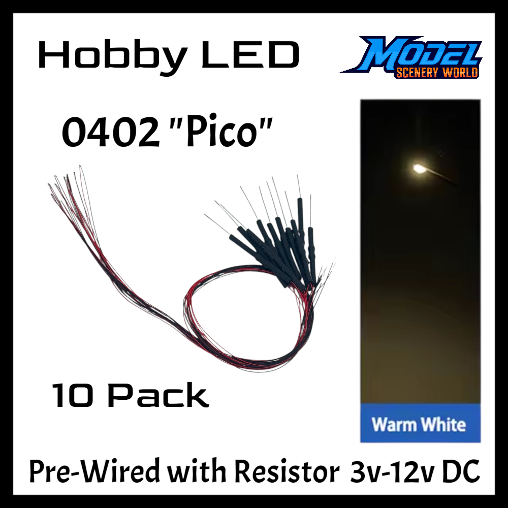 10 Pack Pico 0402 Pre-Wired LEDs ~ 3-12 Volt DC ~ Choose Color