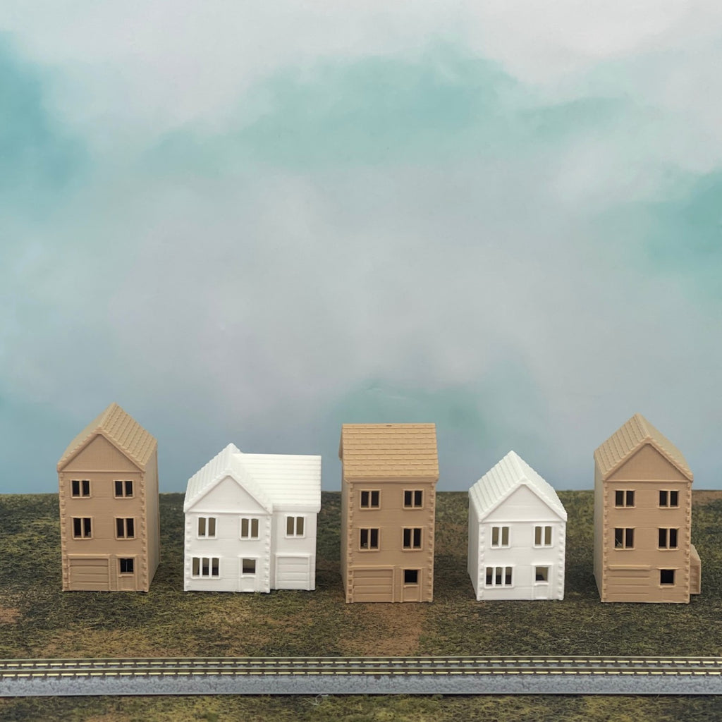 Suburban Row Houses - 5pc Set - N Scale 1:160 - Brown/White